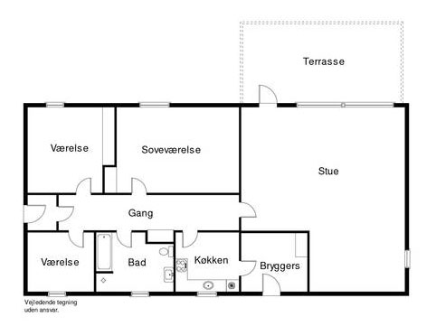 Huset består af, 3 gode værelser, badeværelse med karbad, et funktionelt køkken og en dejlig stor stue samt brygges. Herudover carport og stort redskabsrum.
